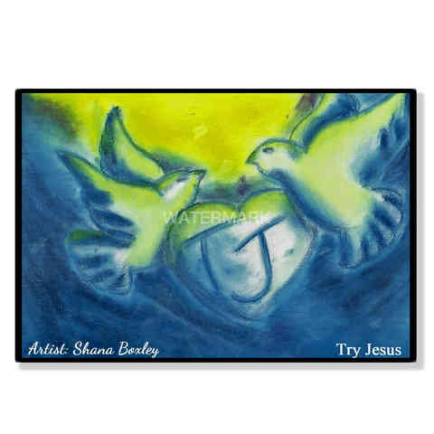 The Item I want to present to you is a picture that presents the simple message “Try Jesus” This picture was shown to me in prayer while I was praying for men who I played basketball with. I asked my daughter (who has the talent of artistry) to place the heavenly dream I had on paper. She was in the 10th grade during this time.